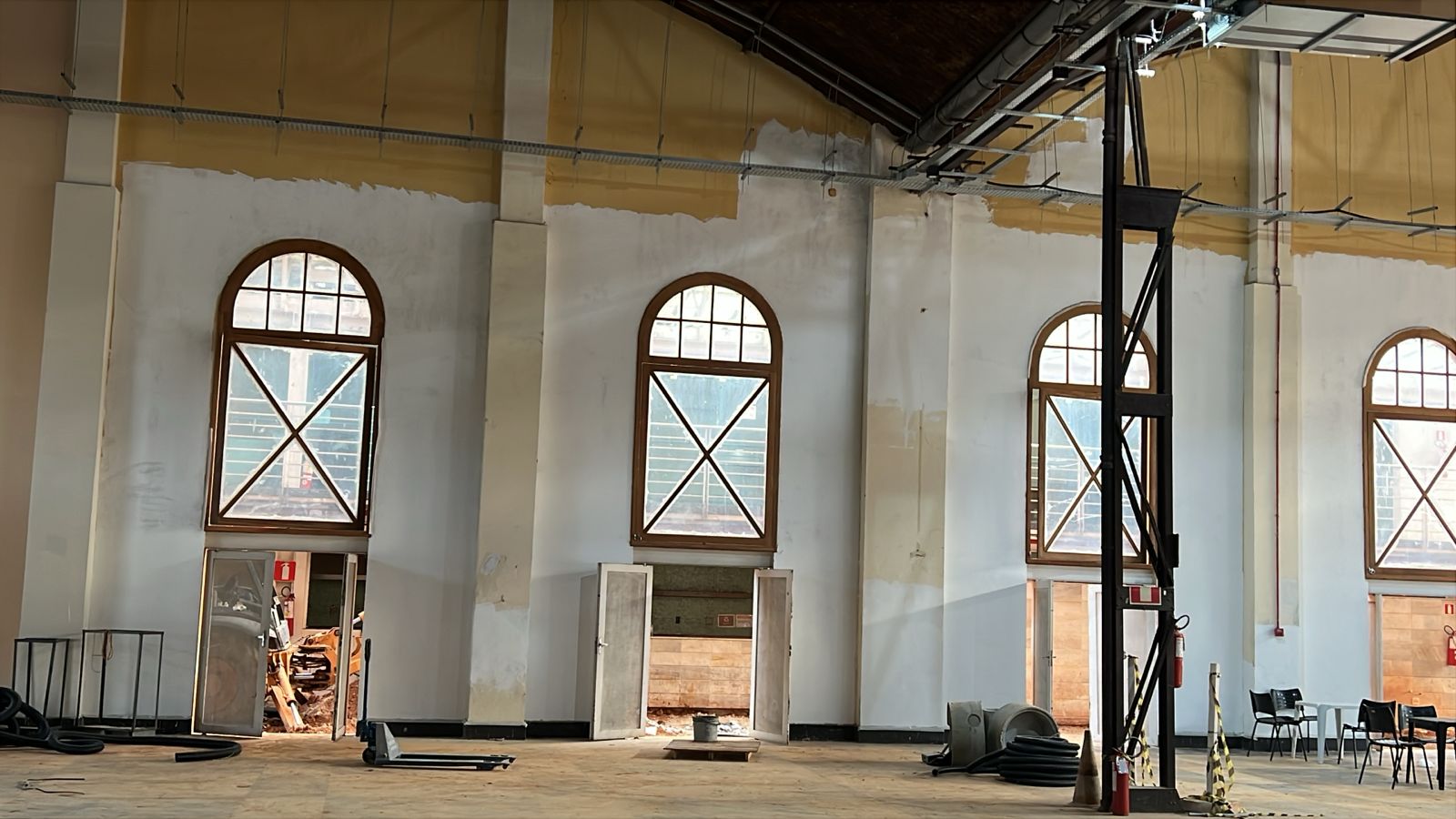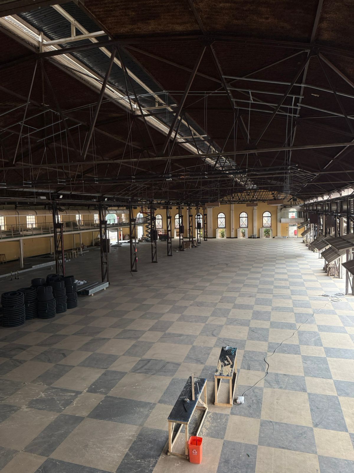 Reabertura do espaço para eventos, mantendo elementos originais como colunas metálicas importadas da Bélgica e amplas janelas.